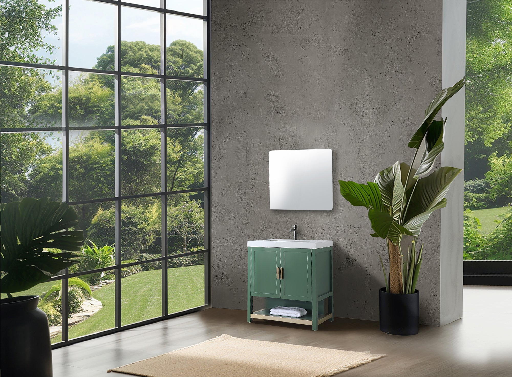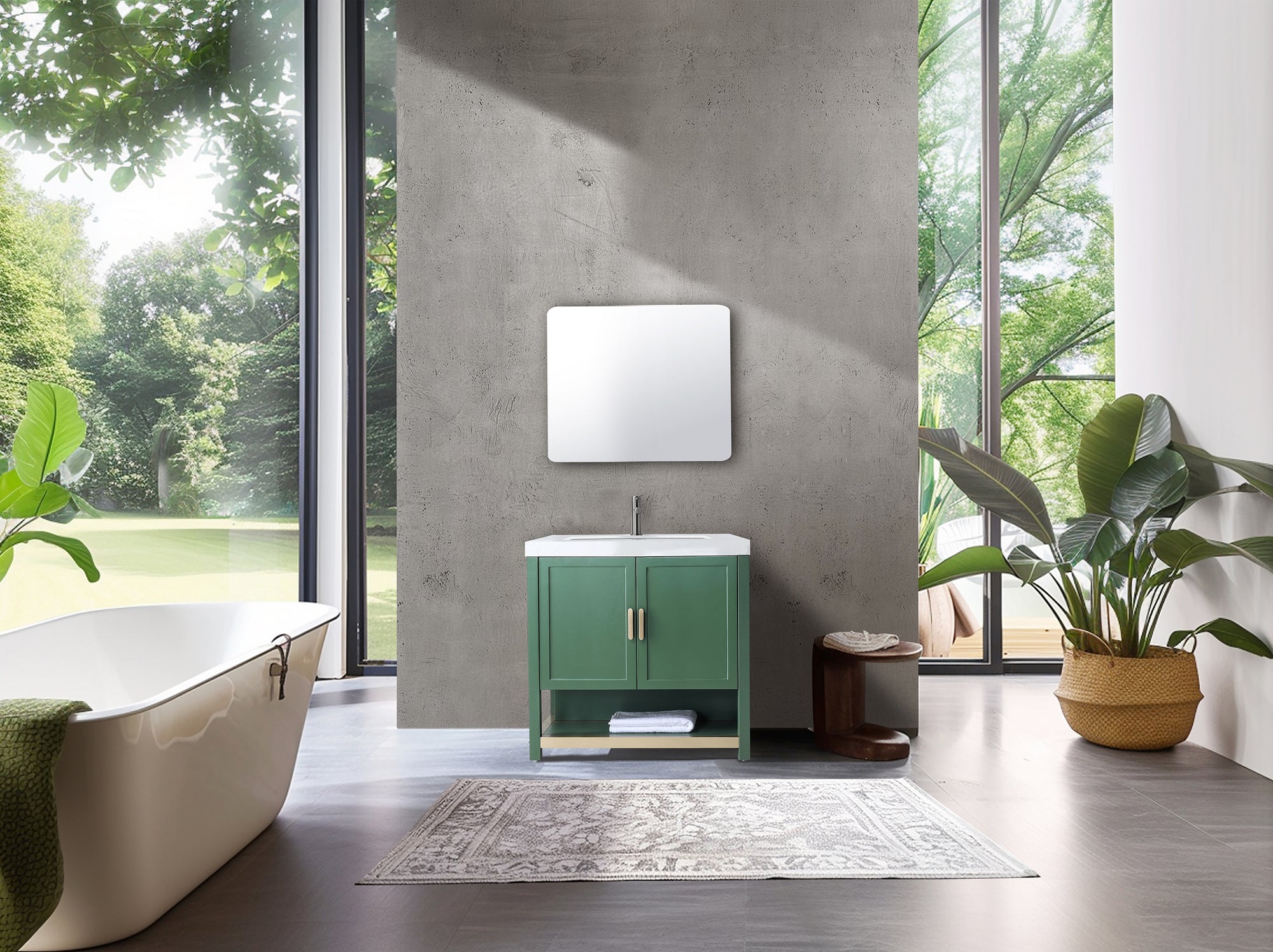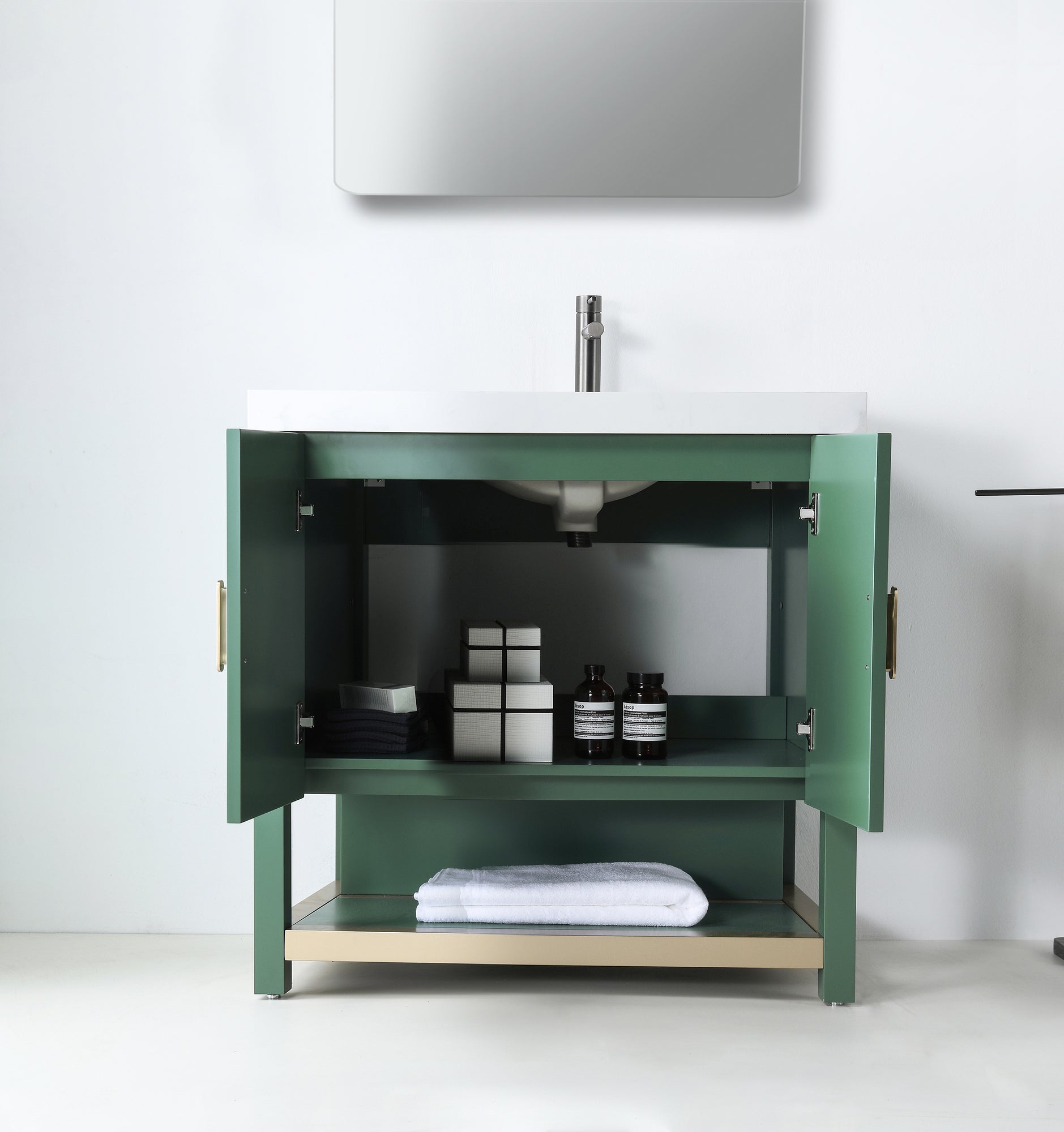 WINCHESTER 36” FOREST GREEN FREESTANDING MODERN BATHROOM VANITY (WHITE COUNTERTOP)